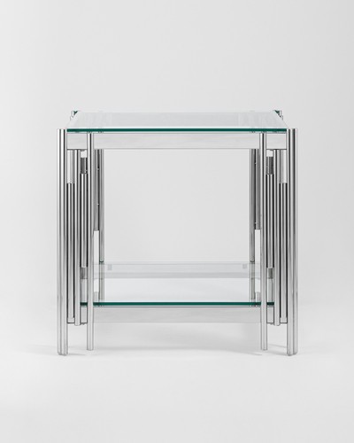 Журнальный столик ГЭТСБИ благодаря оригинальной форме станет ярким дизайнерским акцентом в интерьере. Каркас стола изготовлен из нержавеющей стали, столешница - закаленное стекло.